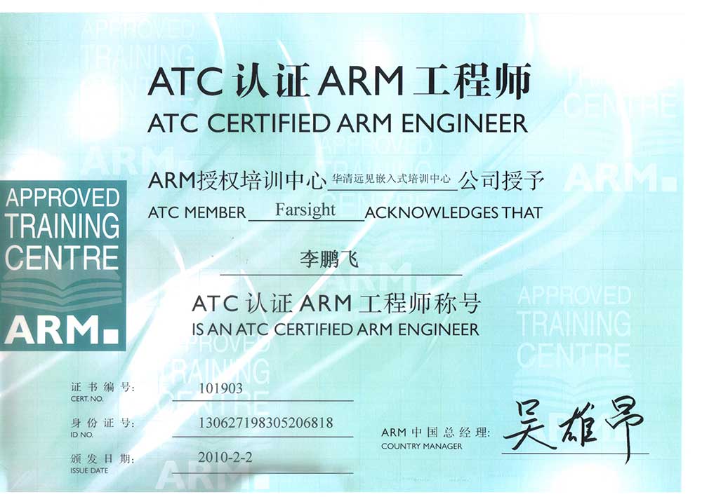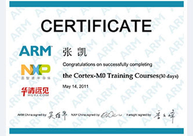 華清遠見是首家Atmel公司全球戰略合作伙伴。Atmel公司已經投入專項資金支持華清遠見建立基于Atmel系列開發板的開放實驗室,會有更多學生借助Atmel提供的專業、配套的軟、硬件環境及培訓課件高效體驗Atmel系列案例的實戰過程并獲得Atmel公司頒發的《Atmel嵌入式工程師認證證書》,目前培訓機構中,只有華清遠見能夠組織對應的Atmel認證考試并頒發證書。NXP嵌入式工程師認證證書樣本