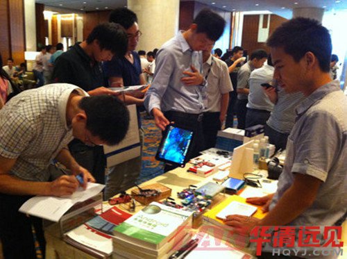 在會議現場,華清遠見作為唯一的專業培訓機構,也特別設置了專門的展桌,向眾多業內工程師和技術愛好者展示了華清遠見原創教材及研發中心新自主研發的Cortex系列開發平臺、物聯網實驗平臺。通過現場講解的方式向參會者介紹了華清遠見旗下企業學院、嵌入式學院,移動互聯網學院及物聯網學院所提供的專業嵌入式、移動開發及物聯網培訓課程體系、教材圖書和實訓案例,得到了眾多參會專業廠商及業內技術工程師的普遍關注和高度認可。