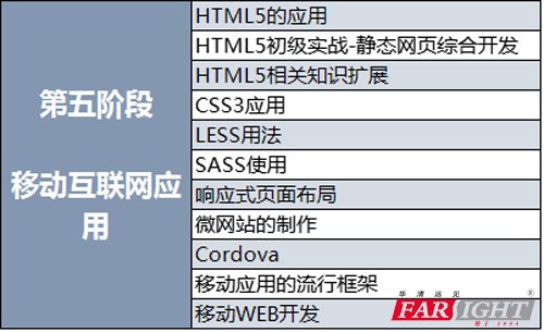 HTML5是最近十年來 Web 開發標準最巨大的飛躍,目前蘋果、谷歌、微軟世界三大移動互聯網巨頭都支持了 Html5,Html5 的發展給移動互聯網應用帶來了全新的變化。Html5 的出現,給移動互聯網帶來了新的變革,為移動互聯網中富媒體的應用提供了新的思路,并具有廣闊的應用前景,所以Html5適應了目前的移動互聯網應用潮流。華清遠見推出的Html5課程旨在培養真正具備Html5前端開發能力的高端人才,所以,想要學習HTML5開發的技術愛好者,選擇華清遠見一定不會后悔!