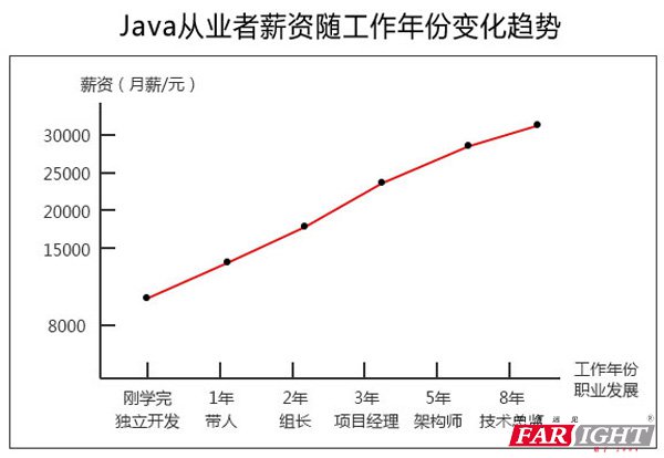 一線城市,初級Java工程師一般月薪范圍在8K-12K左右,遠遠超過了應屆畢業生5K的平均水平。通常來說,有1~2年工作經驗的Java工程師的薪酬大致在年薪15萬-20萬左右。與其他IT開發方向相比,也是略勝一籌。