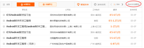 各大招聘網站每天有2萬多個Android相關職位,遠超其他技術崗位: