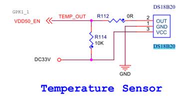 DS18B20 有三個(gè)引腳。根據(jù)原理圖可知,DS18B20采用了外部供電的連接方式,而DQ引腳上拉10k電阻。DQ引腳連接在4412芯片的GPK1_1 引腳上面。