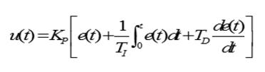 PID算法中有比例積分調節(PI),比例微分調節器(PD),可根據系統要求進行選擇,通常為了改善調節品質,往往把比例、積分、微分三種作用組合起來,形成PID調節器。理想的PID微分方程為:
