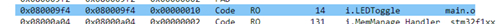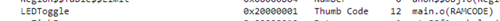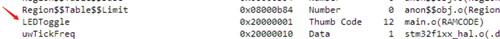 通過查看xx.msp文件,可以看到LEDToggle函數(shù)編譯后的地址是放在flash中的
