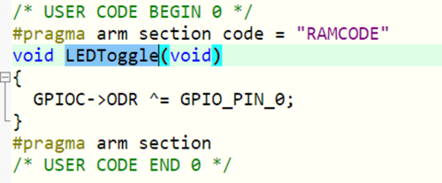那么如何將LEDToggle函數(shù)放在STM32的SRAM中: