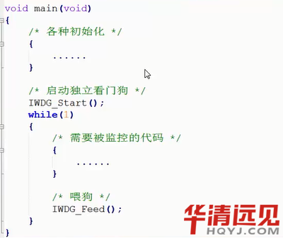//while部分是我們在項目中具體需要寫的代碼,這部分的程序可以用獨立看門狗來監控