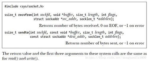 fromlen -- 作為輸入時,fromlen常常設置為sizeof(struct sockaddr).
