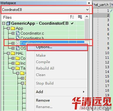 同理在EndDeviceED工程中,把Coordinator.c的文件禁止編譯,具體操作同上。