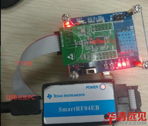 安裝好SmartRF04B驅動后,通過USB先連接仿真器和PC機。仿真器的十針插頭線與ZigBee設備的十針接口相連。下載編譯后的程序: