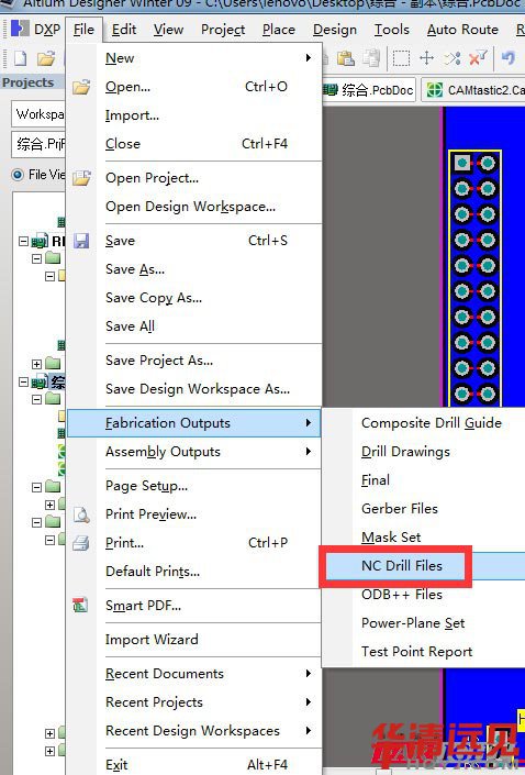 然后操作【File】→【Fabrication Outputs】→【NC Drill Files】