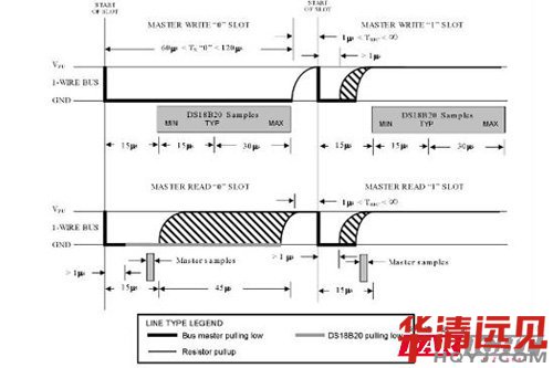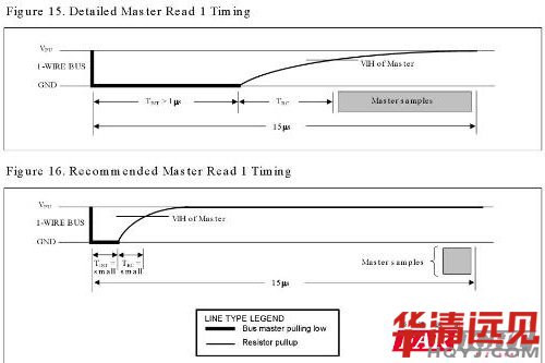 插圖15表明了對于讀時隙,TINIT(下降沿后低電平持續時間), TRC(上升沿)和TSAMPLE(主機采樣總線)的時間和要在15μs以內。