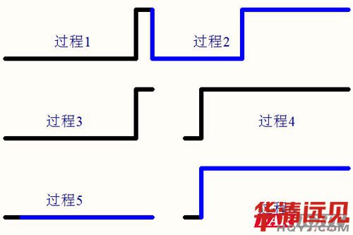 2、過程3、4是寫1bit數據過程。過程3是寫0 ,過程4是寫1。過程3:拉低總線60us,然后抬高總線5us,完成。過程4:拉低總線5us,然后抬高總線60us,完成