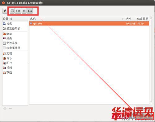 選擇上節編譯好的Qt-everywherezh中qmake的路徑,本文路徑為/opt/qt/bin/,選擇后點擊”打開”按鈕