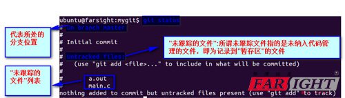 從提示信息我們可以看到,main.c a.out 都是"未被跟蹤的文件",所謂”未被跟蹤的文件“即,還沒有納入git管理的文件