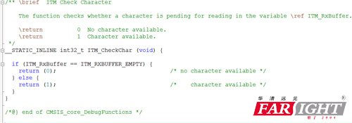 從注釋和函數名基本上也能看出,這是一個校驗函數,并且是校驗輸入的緩存空間的。這里也先不管!再往下看!呵呵!已經沒有往下了,這已經是core_cm7.h文件的后一個內聯函數了。那么久很明確一個事實了,關于ITM的函數只有3個,并且一個為輸出,一個為輸入,一個為校驗。這絕對不是巧合,而是精心設計的。