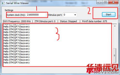 (2)點擊圖中位置2,Start,成功啟動后,就可以看到圖中3有字符串打印了!這么這就算是完事了。
