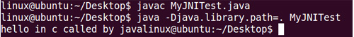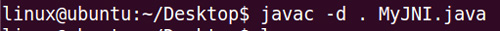 在Linux環境下,進入到java類所在目錄,例如MyJNI.java存儲在Desktop目錄里,執行命令如下: