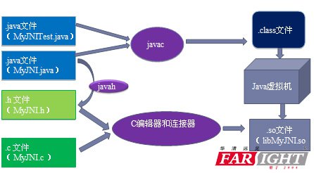 JNI(Java Native Interface)是指Java平臺和本地C代碼進行相互操作的API接口,稱為Java本地代碼接口。當Java程序需要訪問系統的各個特性和設備時,或者一些要求效率和速度的場合時,此時應該采用JNI調用本地C或C++代碼,來完成。如下圖所示: