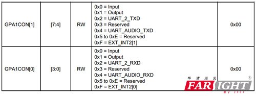 GPA1CON[0] = 0X2 GPA1_0設置為UART_2_RXD