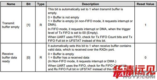 但是要等到receive buffer data ready,也即是有數據可讀。查看是否有數據可讀可以查看寄存器UTRSTAT2的bit 0,置1表示有數據可讀。