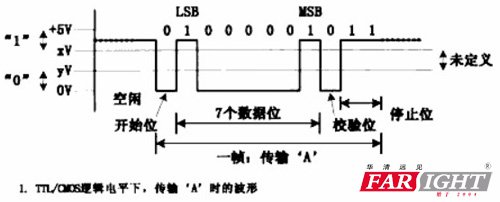 (3)UART一幀中可以有5、6、7或8位的數據,發送方一位一位地改變數據線的狀態將他們發送出去,首先發送低位。