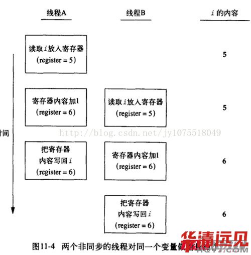 這就導(dǎo)致了上圖的問(wèn)題,A線程在把i從內(nèi)存讀入寄存器改變過(guò)程中(還沒(méi)寫(xiě)回到內(nèi)存),B線程也對(duì)i做了同樣操作,以至于后結(jié)果就是讀入的都是5,寫(xiě)入的都是6,那么本來(lái)我們是要對(duì)i增加2次的,實(shí)際卻增加了1次。這種操作時(shí)間問(wèn)題可能發(fā)生在ns級(jí)別,但是以當(dāng)今處理器動(dòng)輒幾GHZ的速度來(lái)說(shuō),發(fā)生這種情況概率還是很大的。