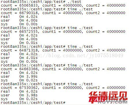 然后我把相同的代碼重新編譯拿到AM335x(TI A8單核600MHZ)運(yùn)行,結(jié)果如下
