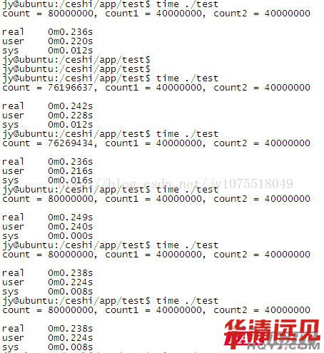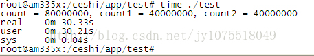 首先在PC機(jī)上看下結(jié)果,CPU是雙核2.6GHZ的,運(yùn)行環(huán)境是ubuntu,順便用time命令查看下執(zhí)行時(shí)間: