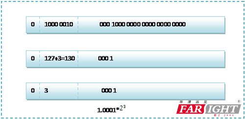 首先看下8.25,用二進制的科學計數法表示為:1.0001*按照上面的存儲方式,符號位為:0,表示為正,指數位為:3+127=130 ,尾數部分為0001,故8.25的存儲方式如下圖所示:
