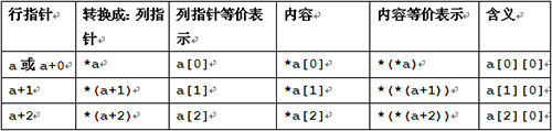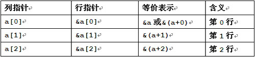 可以將列指針理解為行指針的具體元素,行指針理解為列指針的地址。