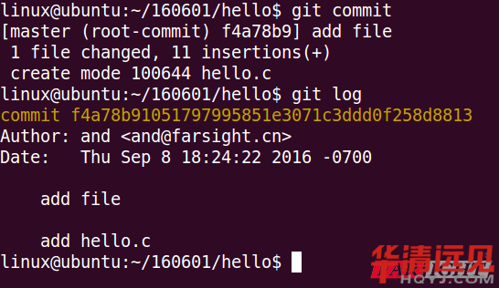 【4】使用git commit,提交本次記錄(記錄為添加新文件),將生成一個(gè)描述修改的log