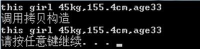 居然成功了,我們用了一個妹子去創造出了另一個。這個里面我們將原先那個Aoi_sola對象的內容完完全全復制給了新對象Yoshizawa_Akiho,那么在實現的過程中,我們的c++編譯器會調用一個看不見的東西,他叫做默認拷貝構造函數。這個函數為新妹子Yoshizawa_Akiho分配了內存空間并完成了與妹子Aoi_sola的復制過程,克隆人就這么出來了。