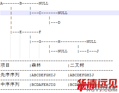 在森林與二叉樹之間存在一一對應(yīng)的關(guān)系