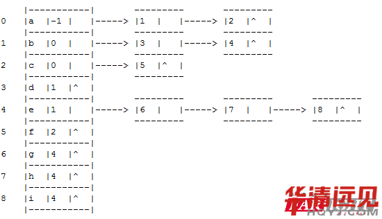 parent是指出該結(jié)點的雙親結(jié)點在數(shù)組中的下標(biāo);