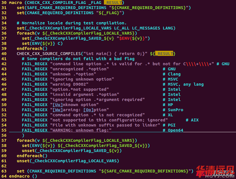 如:如果我們想檢查編譯環境的時候,就可以加入CheckCXXCompilerFlag模塊。