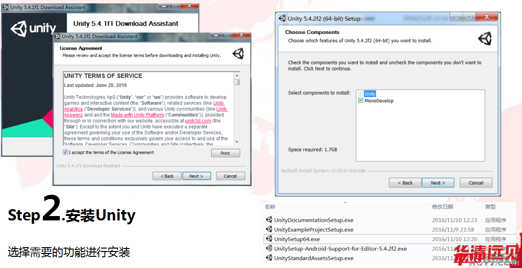 Step2:安裝Unity包,必須安裝的項目是Unity Editor編輯器,以及MonoDevelop IDE開發工具