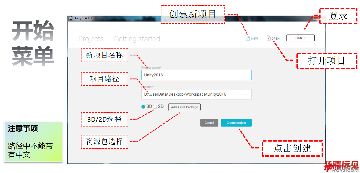 只有打開了新的項目才能設置Unity環境,新建項目如下