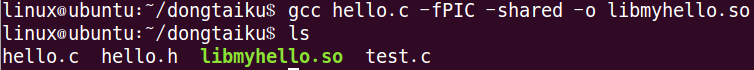 (或者直接寫成一步:gcchello.c -fPIC -shared -o libmyhello.so)