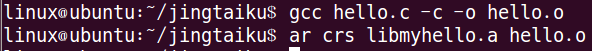 第三步:使用ar將hello.o制作成靜態(tài)庫