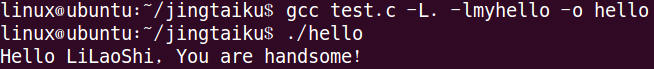 gcctest.c –L. –lmyhello –o hello