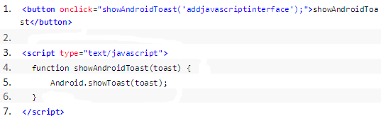 1. mWebView.addJavascriptInterface(new WebAppInterface(this), "Android");