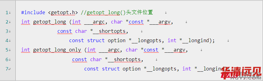 ? 程序中使用長選項,則根據flag和val的值確定。當flag為NULL時,返回val值(val值必須唯一)。當value值等于短 選項的值時,可以使用短選項解析長選項;當flag不為NULL時,則將val值存入flag所指向的存儲空間,此時getopt_long返回零。