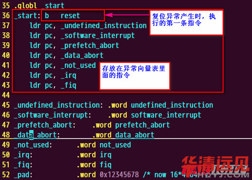 從上面我們可以知道,異常向量表里面存放的都是跳轉(zhuǎn)指令。有些時直接通過b指令實現(xiàn)的,有些時通過修改pc值實現(xiàn)的。這也就是剛剛我說到的"火箭"。跳轉(zhuǎn)的目的是跳到一個地方對異常進(jìn)行處理。也就是我說到的到醫(yī)生那里去"治療"。