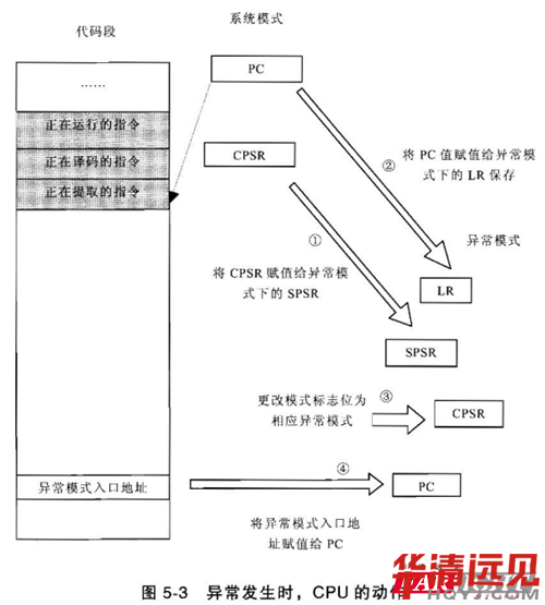 (2)把PC寄存器保存到相應(yīng)異常模式下的LR中