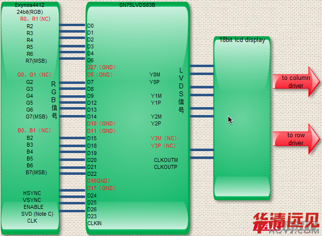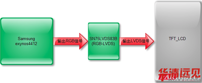 其實就是:把三星芯片輸出的TTL(RGB)信號轉換成LVDS差分信號輸出的LCD接收端。