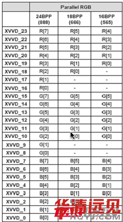 對于8bit單路TTI,輸出接口,共有24條RGB數據線,分別是R0~R7紅基色數據8條,B0~B7綠基色數據8條,BO~B7藍基色數據8條,共3*8=24條。由于基色RGB數據為24bit,因此,也稱24位或24bitTTL接口。