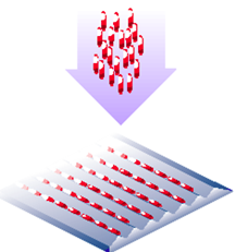 b、液晶的垂直分布:當(dāng)液晶被包含到兩個(gè)槽狀表面中間,且槽的方向互相垂直,則液晶分子的排列為,上表面分子沿著a方向;下表面分子沿著b方向;介于上下表面的分子產(chǎn)生旋轉(zhuǎn)效應(yīng),因此液晶分子在兩個(gè)表面間產(chǎn)生90度旋轉(zhuǎn)。