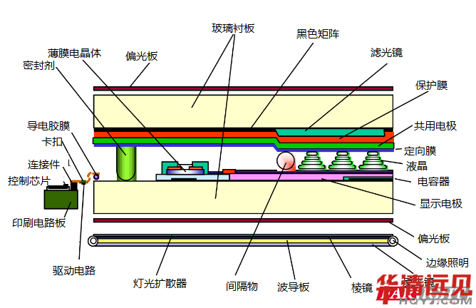 • 上下偏光板,玻璃基板,液晶:形成偏振光,控制光線的通過(guò)與否;