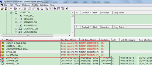 這時候大部分的dll文件都自動拷貝過來了,但是如果項目還用了一些其他的SDK,比如OpenCV,Chartdir51等等,就需要手動將所需dll拷貝過來,如果不知道還需要哪些軟件,可以用Dependency Walker來查看缺少哪些dll文件。