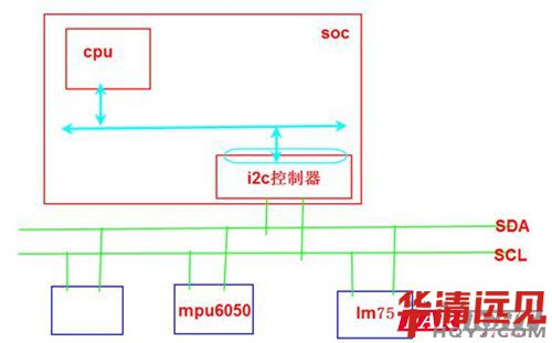 兩根線:一根線用來傳數(shù)據(jù),另一根線用來同步時鐘(SDA:數(shù)據(jù)總線,SCL:時鐘總線)